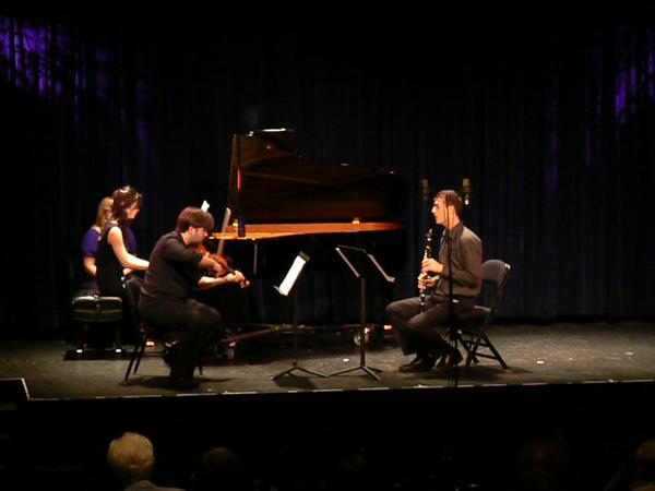 The Trio for clarinet, violin and piano being performed by Aaron Boyd (violin), Gilad Harel (clarinet), and Vicky Chow (piano) at Symphony Space, as part of the 2008 ACA Festival of American Music. (Image curtesy of ACA.)
